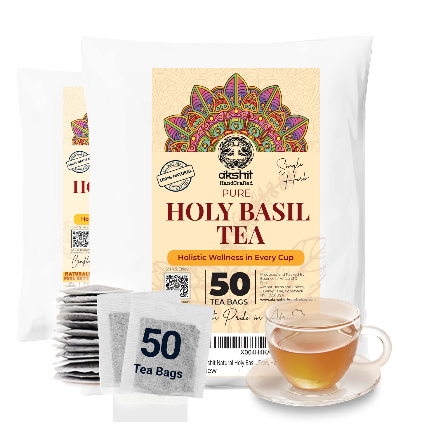 Akshit Holy Basil Tea ( Tulsi Leaf Tea ) 50 Tea Bags, Made with Pure Dried Holy Basil Tea Leaves Immune Support Tea, Caffeine-free, Non-Gmo, Tulsi Tea.